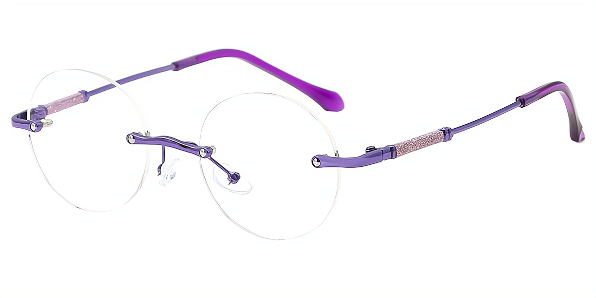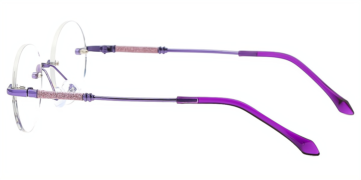 Rosalie redefines elegance with its delicate oval silhouette and rimless design, creating a weightless, barely-there feel. Crafted from mixed materials, these glasses combine durability with a feminine charm. The intricate detailing on the temples adds a refined touch, while adjustable nose pads enhance comfort. Weighing 15.5g, Rosalie is designed for progressive lenses but is not compatible with bifocals. Available in shades of purple, pink, and gold, this frame effortlessly complements both casual and formal looks. Perfect for those who seek a sophisticated yet lightweight eyewear choice.