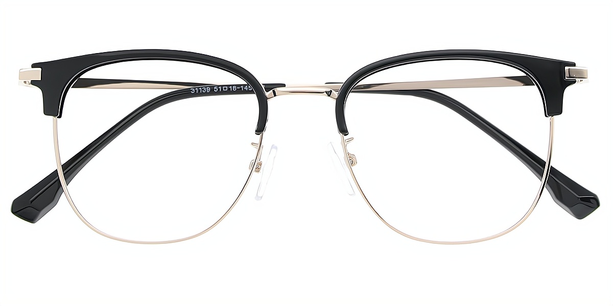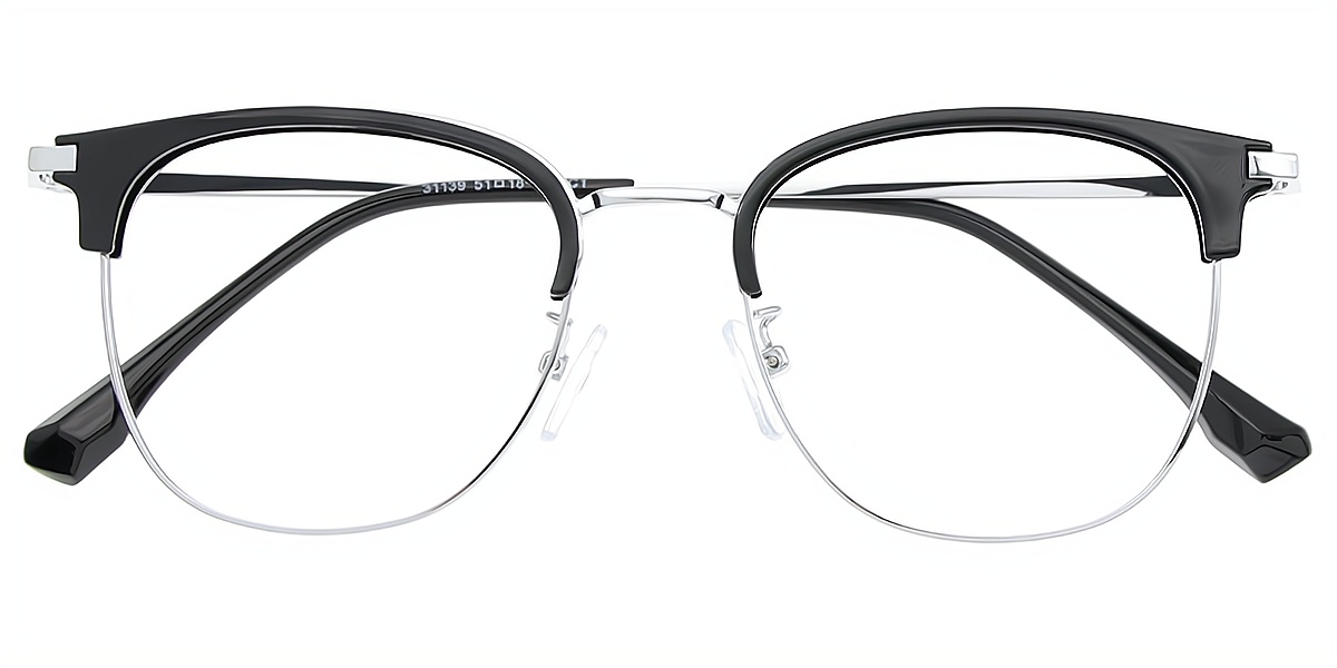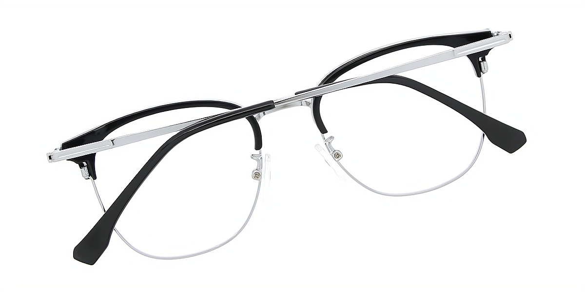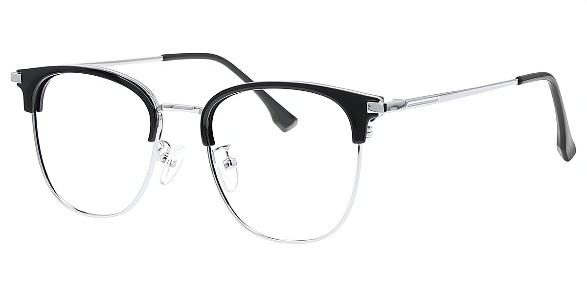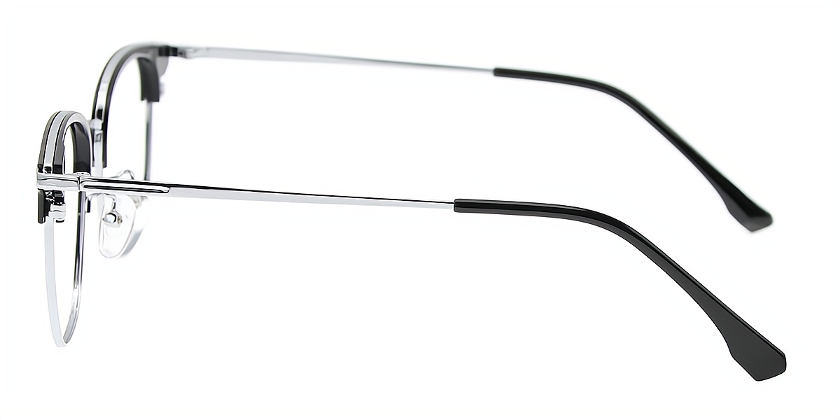 Black Silver Browline Classic Mixed Materials Eyeglasses