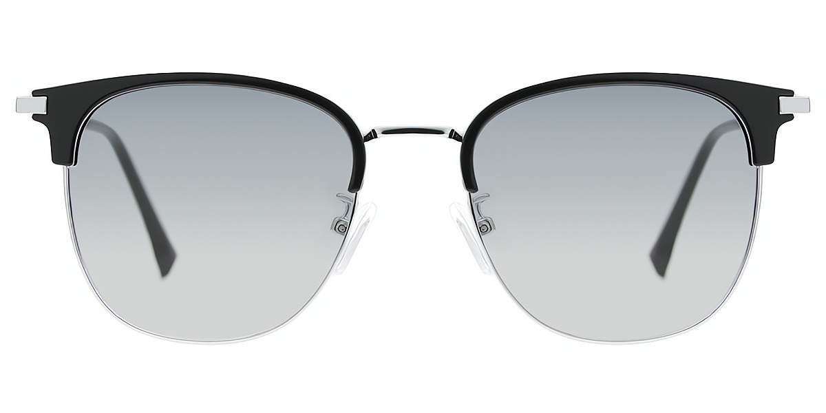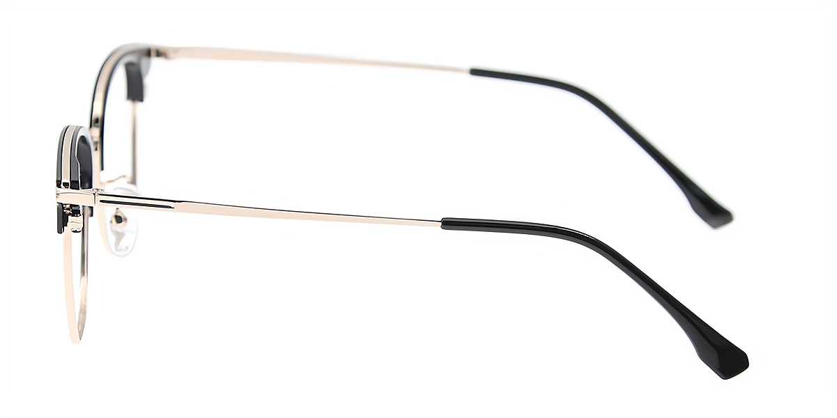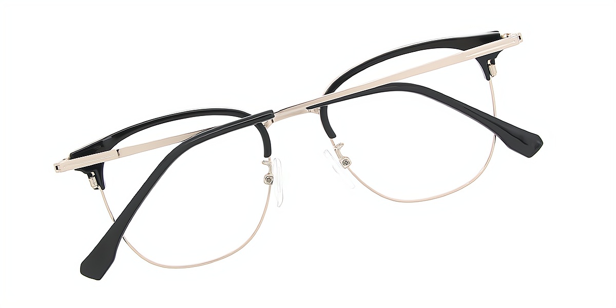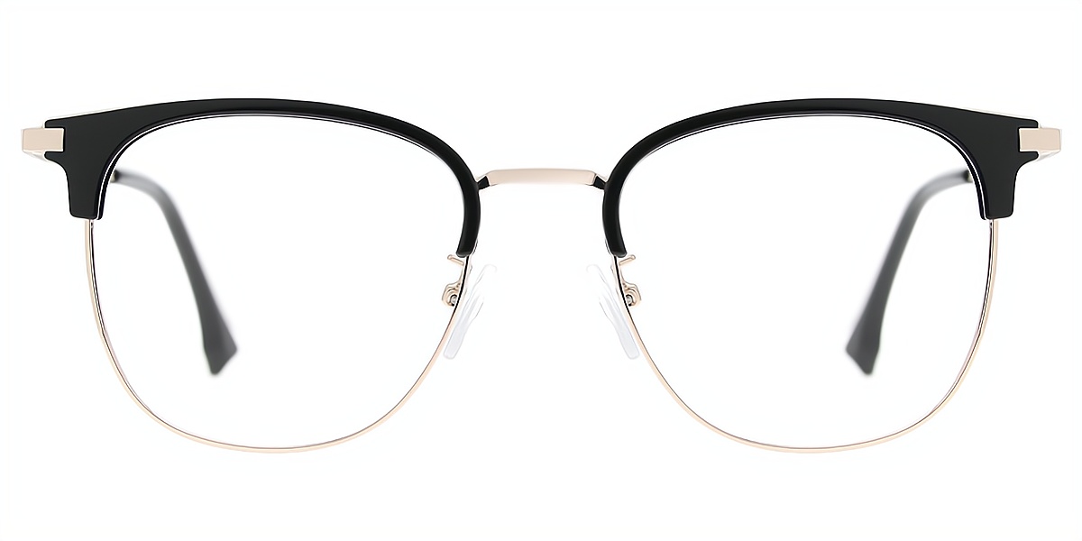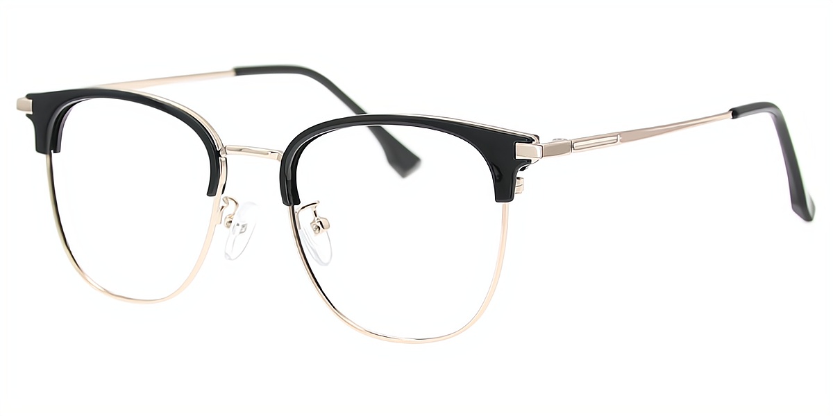 Black Silver Browline Classic Mixed Materials Eyeglasses